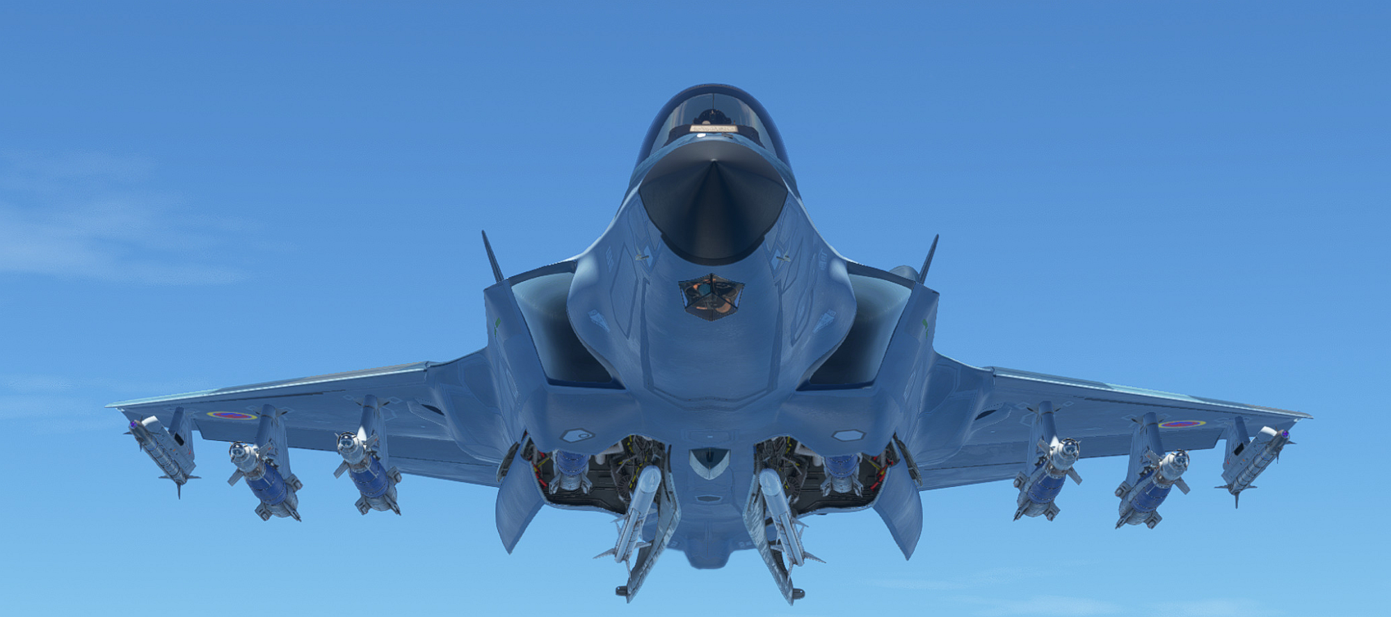 Ze względu na obniżenie wykrywalności część uzbrojenia jest umieszczona nie na podwieszeniach, ale w komorach w kadłubie (2600 kg). Poza tymi komorami samolot może przenosić uzbrojenie na podwieszeniach zewnętrznych (podskrzydłowych), ale skuteczne pole odbicia radowego jest wtedy większe.