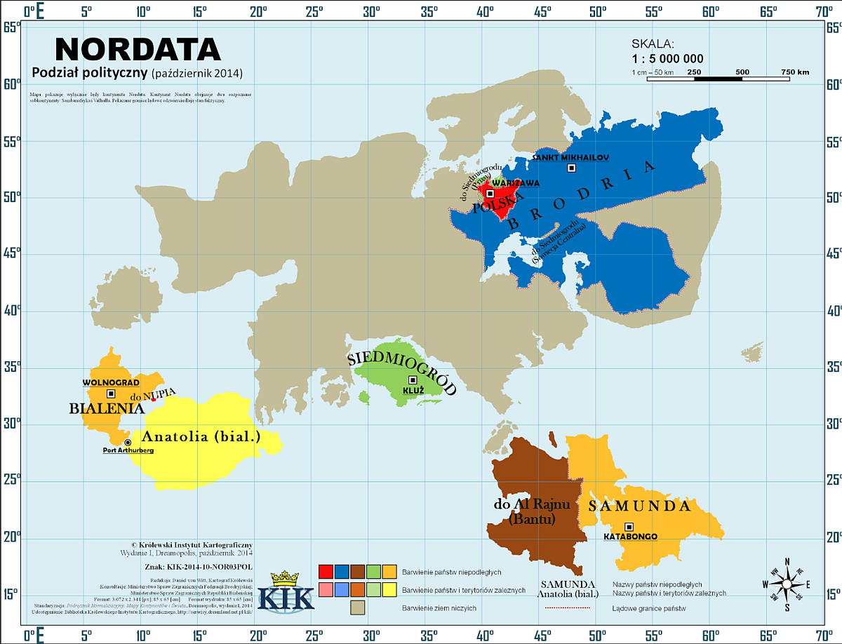 Mapa KIK dotycząca Nordaty z października 2014 - już z naniesioną Federacją Brodryjską. Należy jednak zwrócić uwagę, że wymiarowanie KIK było całkowicie błędne i niezgodne z ustaleniami wcześniejszymi oraz tymi uznawanymi przez państwa na danych kontynentach.