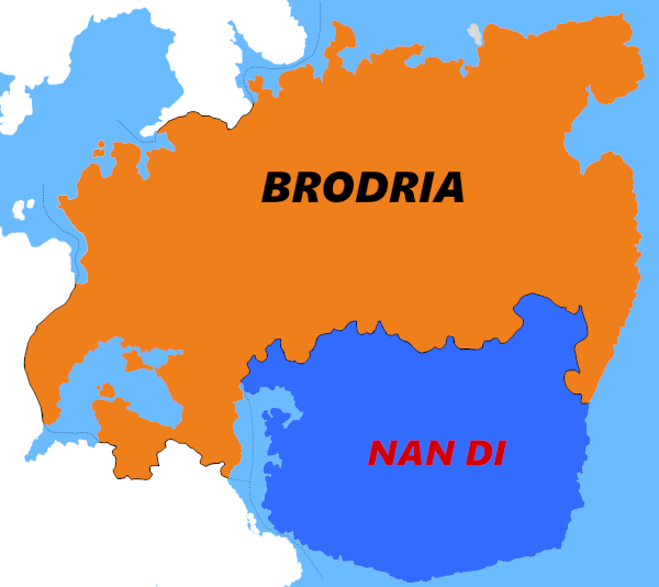 W zasadzie okres Carstwa Brodryjskiego to czasy kiedy całość obecnego Nan Di jest już we władaniu Brodrii. Rejon dawnej Astanii ten nazwano Czuwacją. Załączona poniżej mapa (wycinek większej całości, która zaginęła w "mroku dziejów") Carstwa Brodryjskiego pokazuje już cały teren Nan Di w granicach brodryjskich.